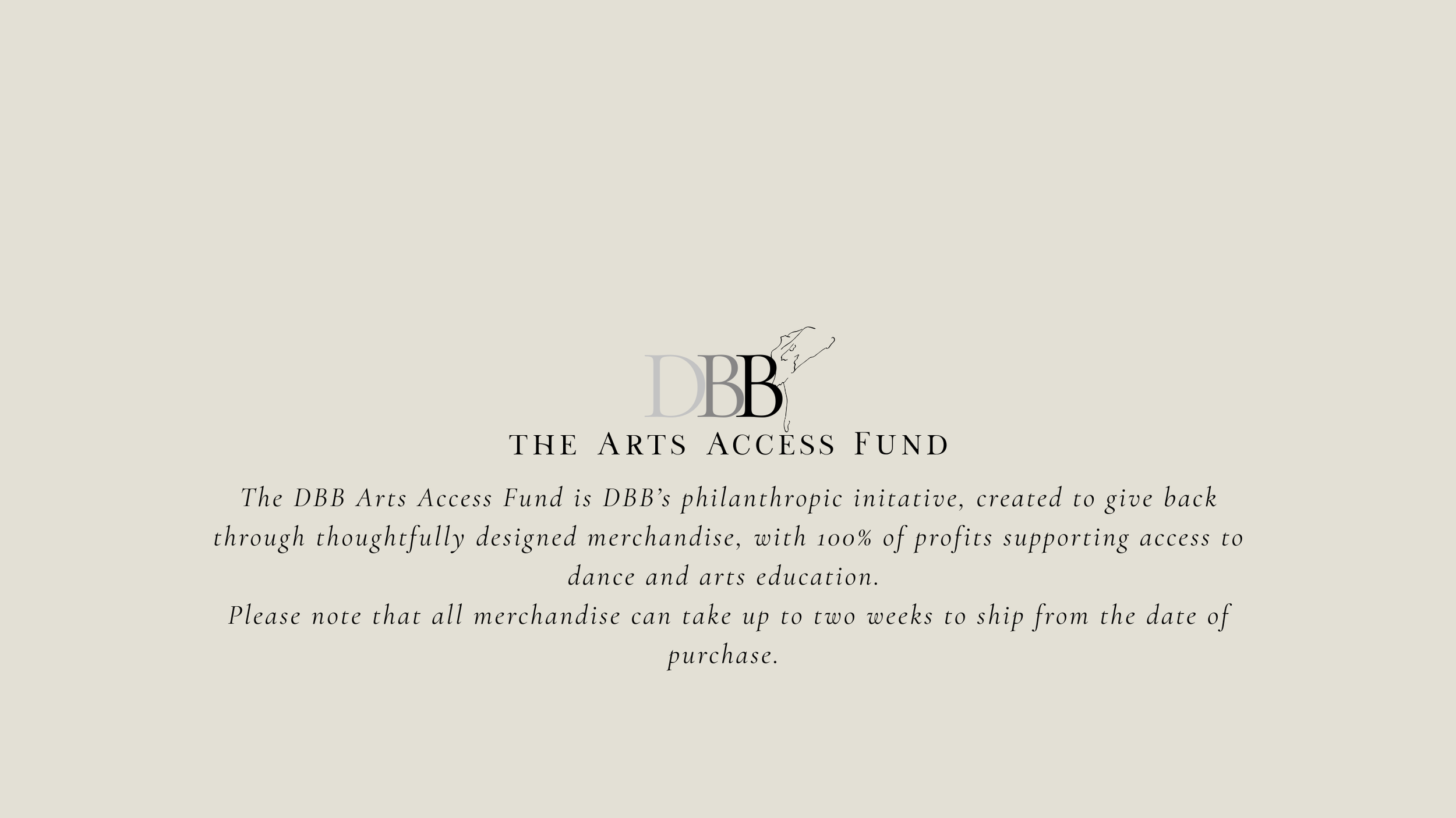 • The DBB Arts Access Fund is an initiative created by DBB to support access to dance and arts education for children. Through merchandise sales and community-driven efforts, the fund helps direct financial support to organizations and programs that provide meaningful arts education opportunities to young artists.